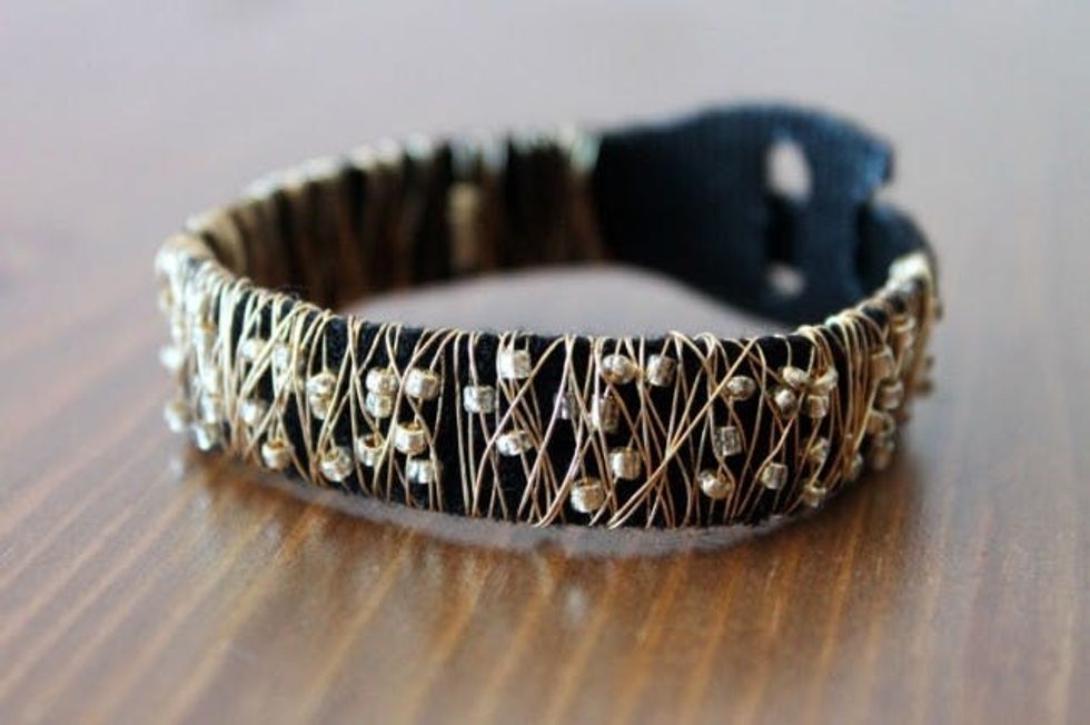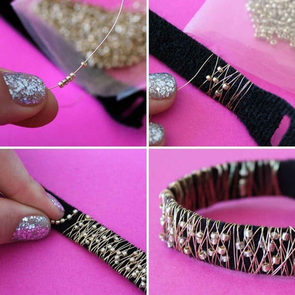 Use the same wire as before but this time add beads and wrap. Keep adding beads as you wrap, making sure not to put any beads on the side that faces your wrist. That’s it!