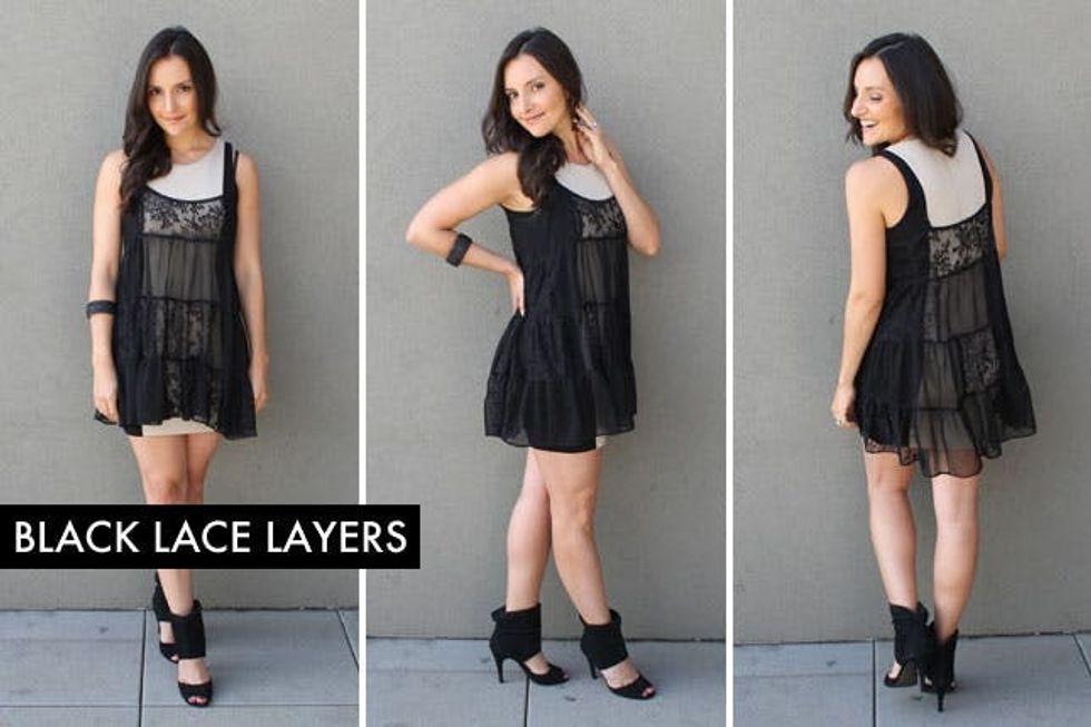For a look that’s a little more evening-ready, throw a lacy slip dress over your shift. It has just the right amount of flirt without being too revealing.