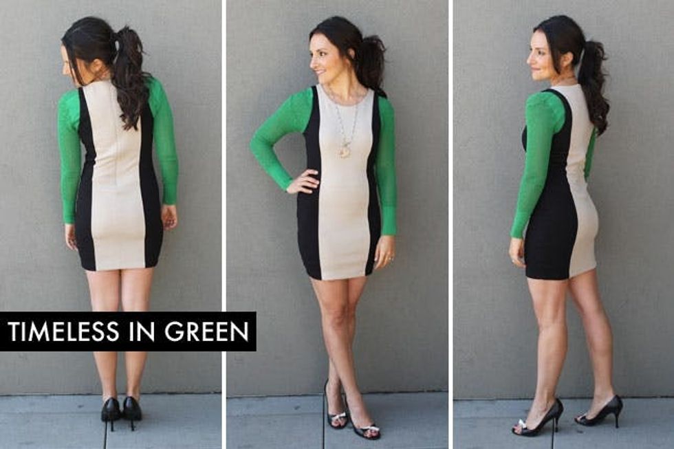 Or you can add color underneath the dress! We love this rich kelly green – it adds a bit of charm to the look but still works for a business meeting, cocktail party, or night out.