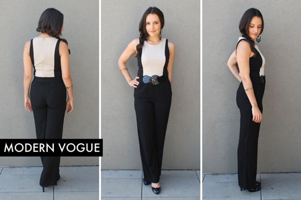The moment we put this look together, we instantly thought of Madonna’s look in the classic Vogue video, but with a modern wearable twist. Simply roll up your dress and tuck into a pair of black trousers, add a big belt, and you’re done.