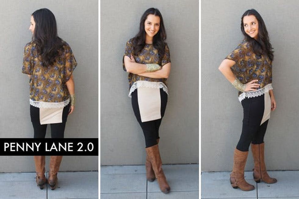 Admittedly, the look before this is channeling the same Penny Lane vibe. You know, Penny Lane the ultimate Band-Aid (aka Groupie) from Almost Famous? Love the hippie top over a pair of leggings with chunky boots.