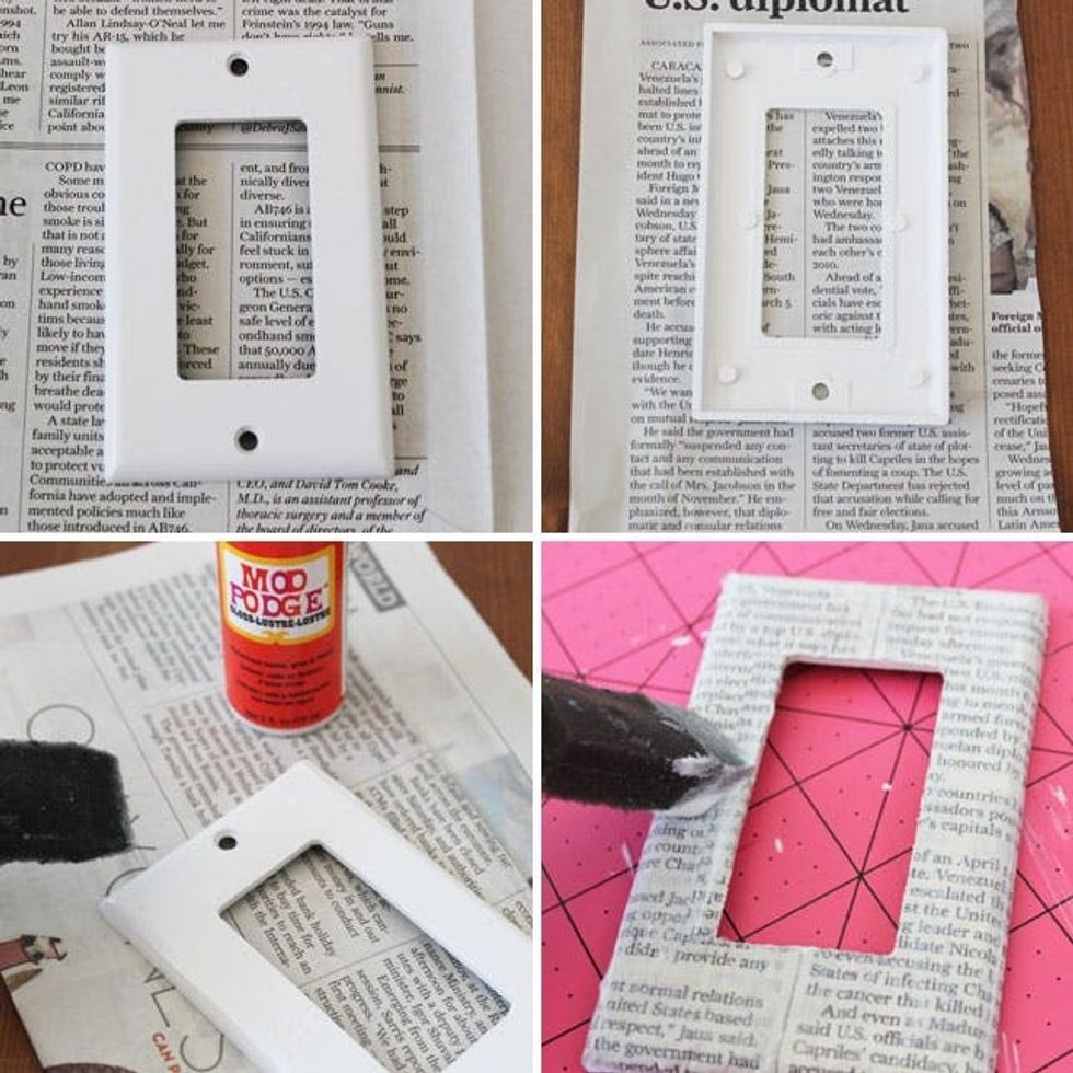 This one is all about Mod Podge! Trace your outlet cover, cut the shape out in newspaper, and Mod Podge onto the cover. So cute.