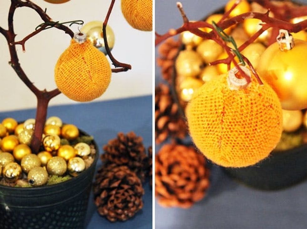 3. Cozy Ornaments: If you’re looking for a more rustic vibe on your Christmas tree or at your table, try using an old sweater or old scarf to revamp shiny ornaments. Also good for glittery ones that have lost their glitter.