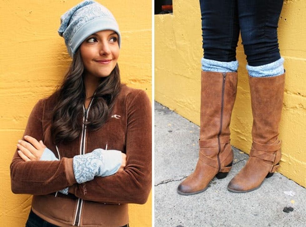 Last, we took one hoodie and turned it into three fun accessories, perfect for transitioning into colder months.