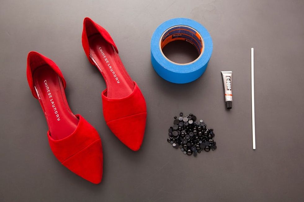 We’re all over the D’Orsay flats craze but lately we’ve been itching to embellish ’em up a little bit. It’s easy to go overboard in the craft department when it comes to adding beads, rhinestones, or sequins to your shoes, so we decided to take a step back and go for something super simple.