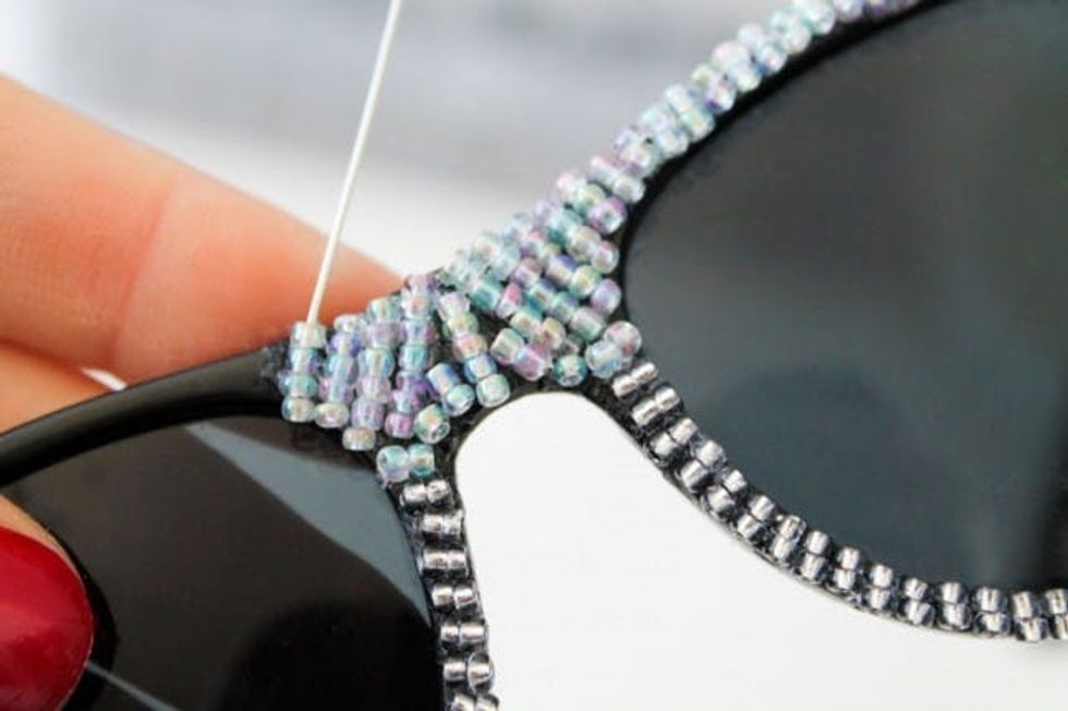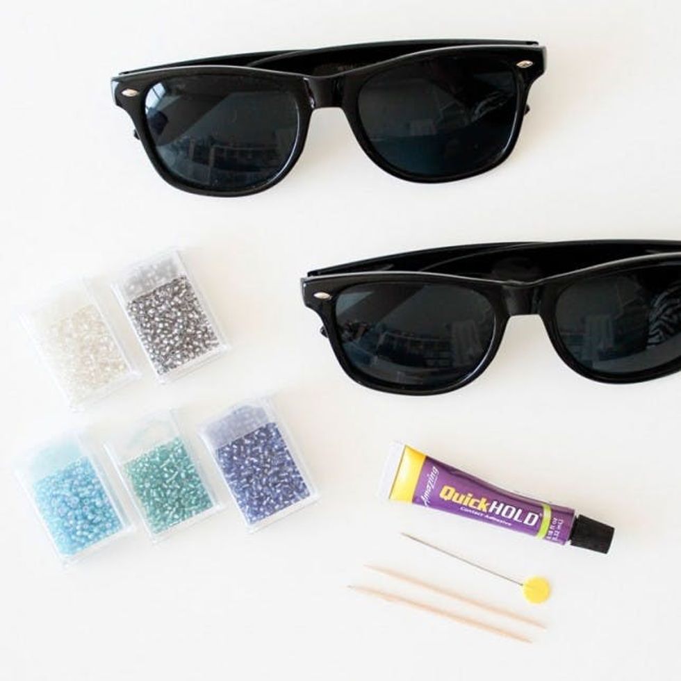 While treasuring hunting on the web for all sorts of cool ways to spruce up your sunglasses, we were inspired to create our own beaded take on this tricked out trend. It’s a little more subtle than flat-back pearls, and a little more sparkly than glitter nail polish. Read on to learn how to bead your own stylish sunglasses.
