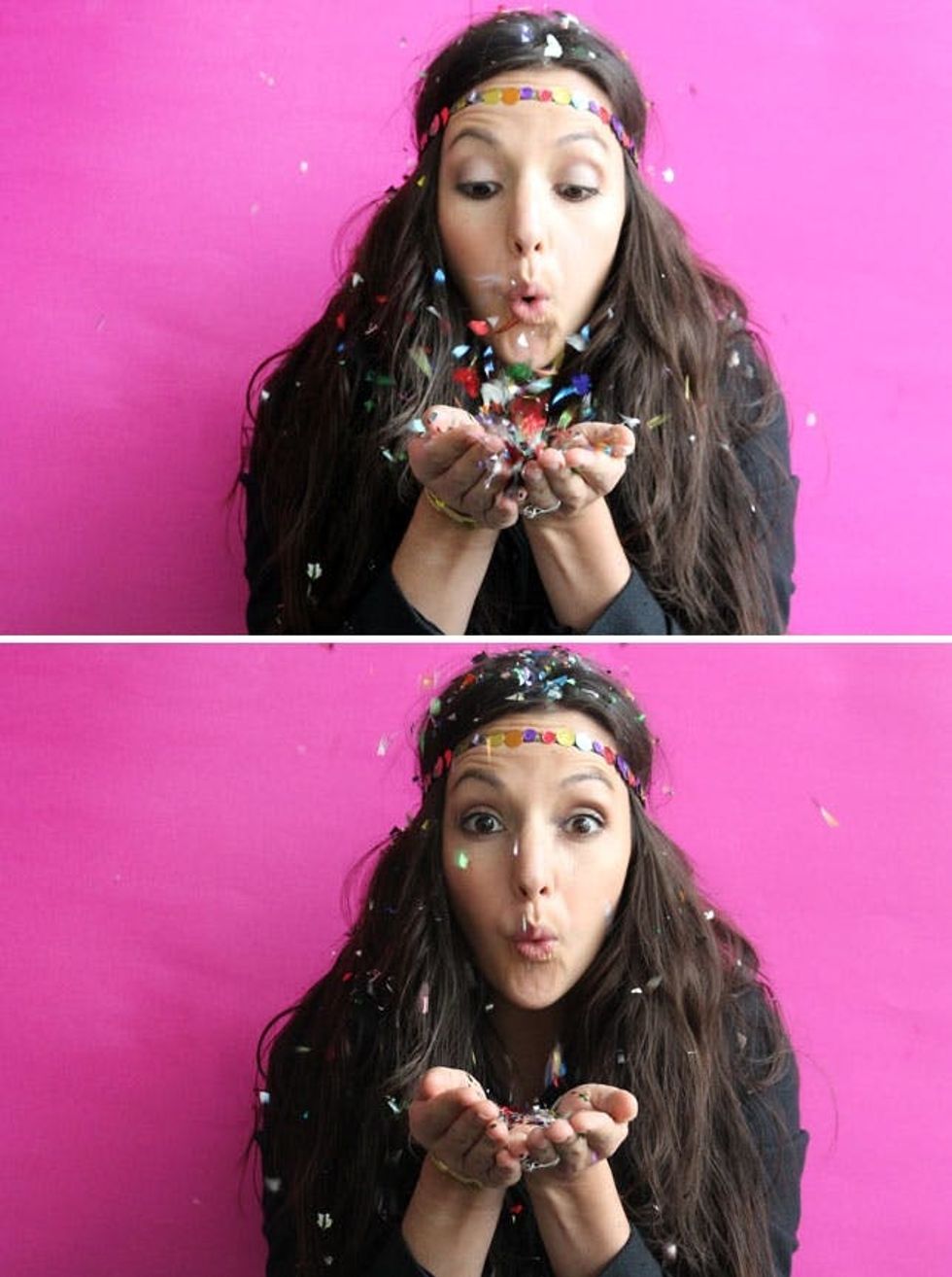 Like our New Year’s Eve statement headbands, all you need is a headband, hot glue, and confetti for this colorful look.