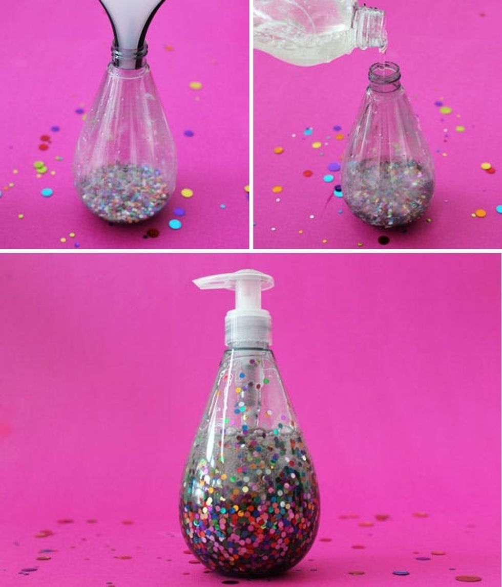 6. Confetti Soap: Spice up your standard soap pump by filling it with confetti. Make sure to use confetti that’s large enough that it won’t try making its way into the pump. This will certainly surprise your guests when they use the restroom at your party.