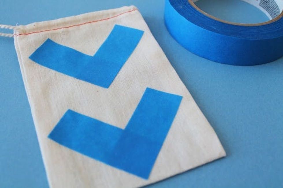 We’ll start things off with a simple custom gift bag. We used painter’s tape to create a chevron-inspired stencil and stitched around the tape.