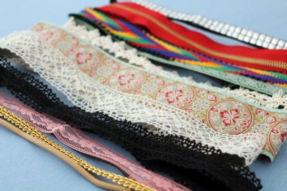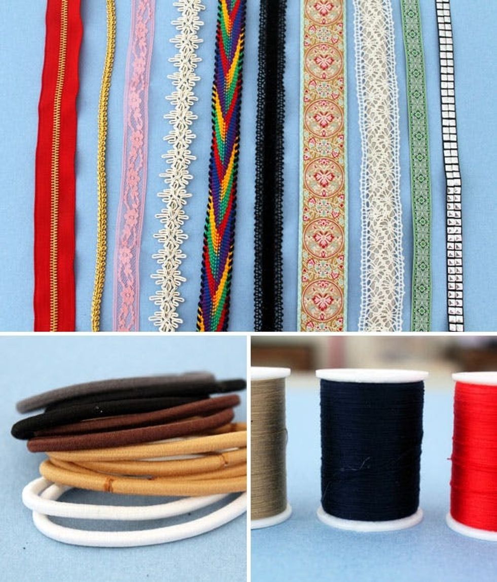 1. Cut all of your trim to ___ inches long and cut your elastic in half.