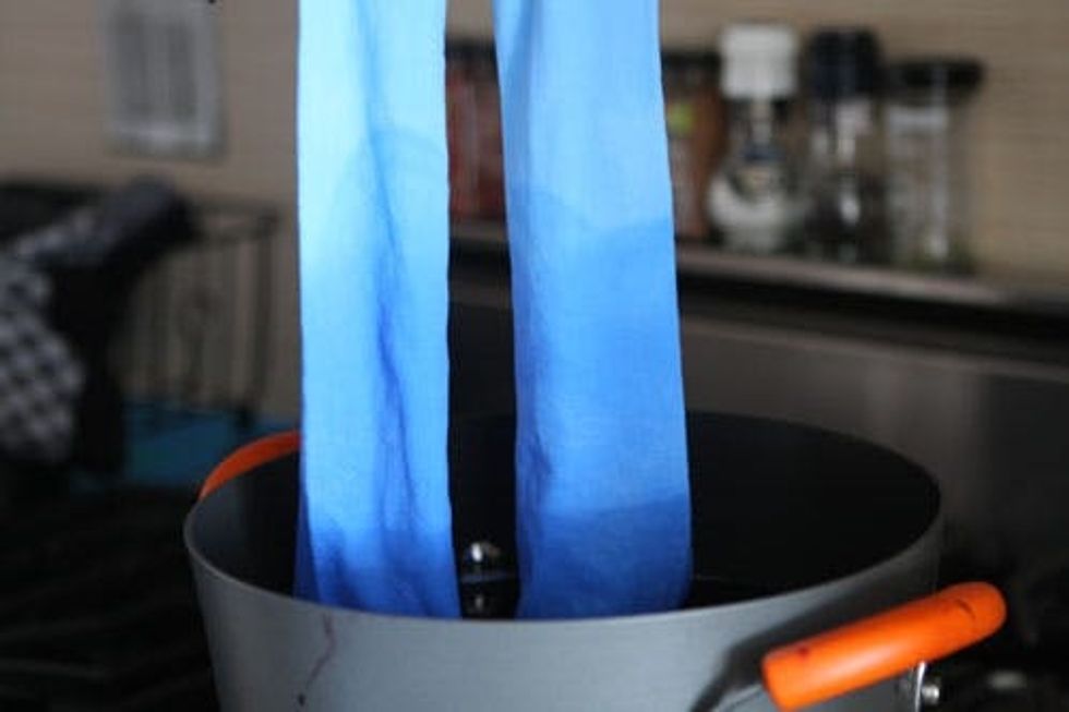 1. While it's heating up, pre-soak your tights in cold water. Squeeze out excess water gently.