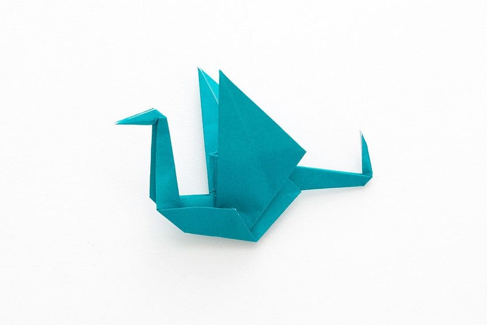 Lift up your bird base and swing the back flap on the right side over to the left..