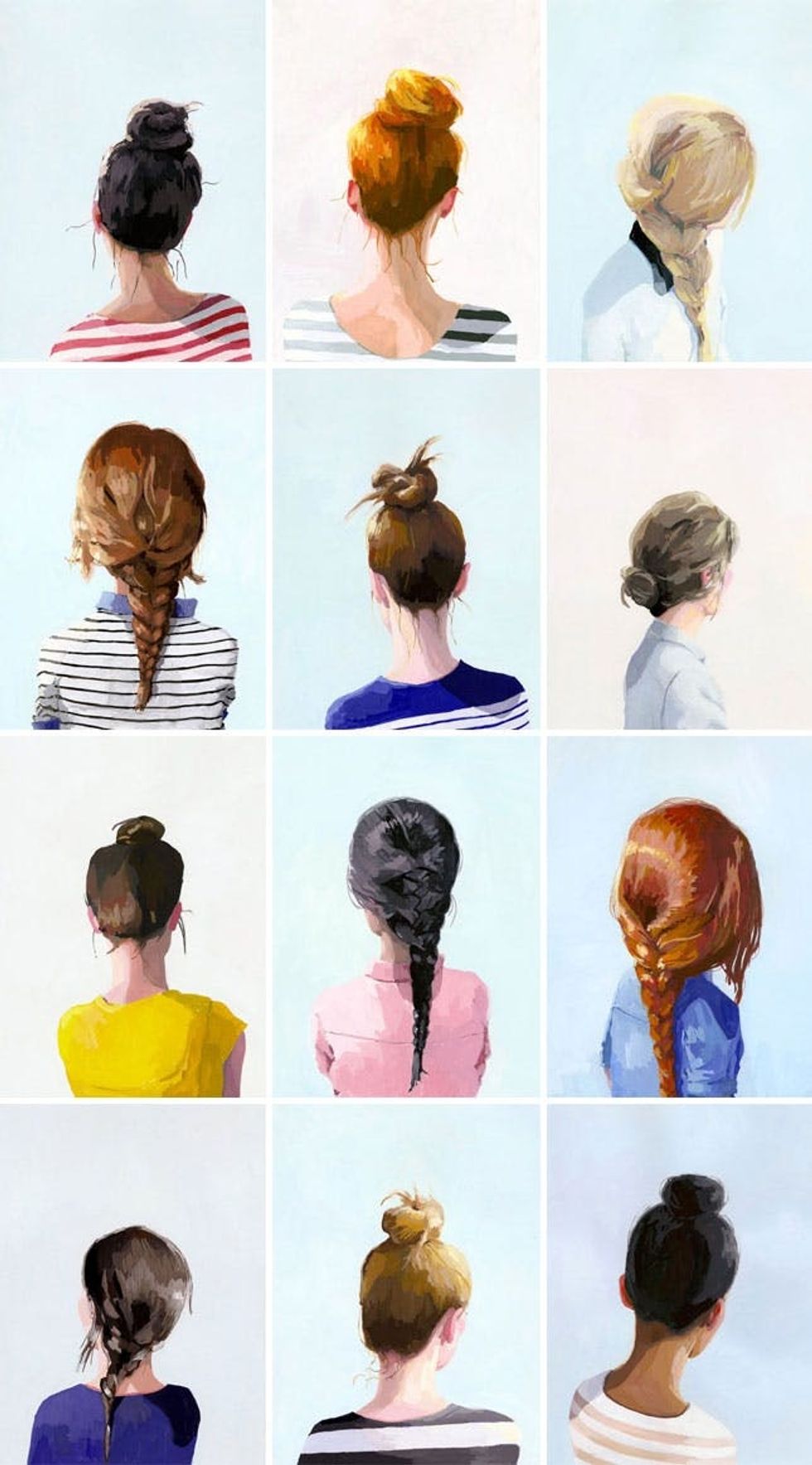 Speaking of effortless summer updos, what’s easier than a simple topknot or braid? They both scream summer with their simplicity, and these prints by Elizabeth Mayville capture that quiet elegance beautifully.