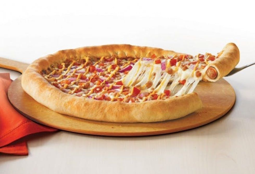 13. Pizza Hut Hot Dog Stuffed Crust Pizza: The high quality of this photo just doesn’t make up for the insanity that goes into putting a series of hot dogs inside of a pizza.
