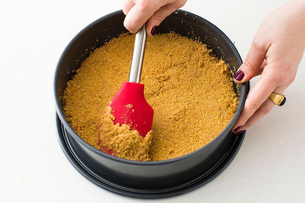 - Preheat oven to 350 degrees F. In a large bowl, combine the graham cracker crumbs, sugar, melted butter and Dylan’s Candy Bar Honey Graham Cracker Spread. Mix to combine. Press into the bottom of a greased 9-inch springform pan (you may not need to use all of the crust mixture). Bake for 8 minutes. Let cool.
