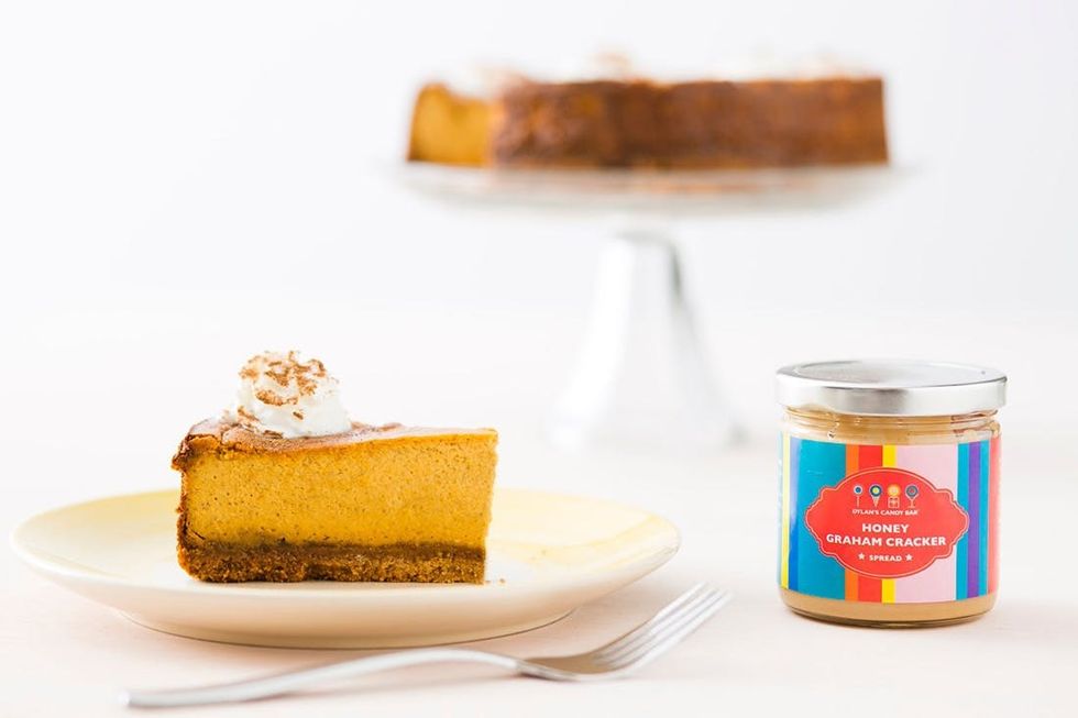 Thanksgiving is just a few days away, and that means one thing: Pumpkin! We’ve teamed up with Dylan’s Candy Bar to bring you one pumpkin recipe to rule them all. Introducing our Honey Graham Pumpkin Cheesecake! The best part about this recipe? The crust. We’ve doubled down on the graham cracker goodness by adding Dylan’s Candy Bar Honey Graham Cracker Spread to the mix. You can thank us later ;)