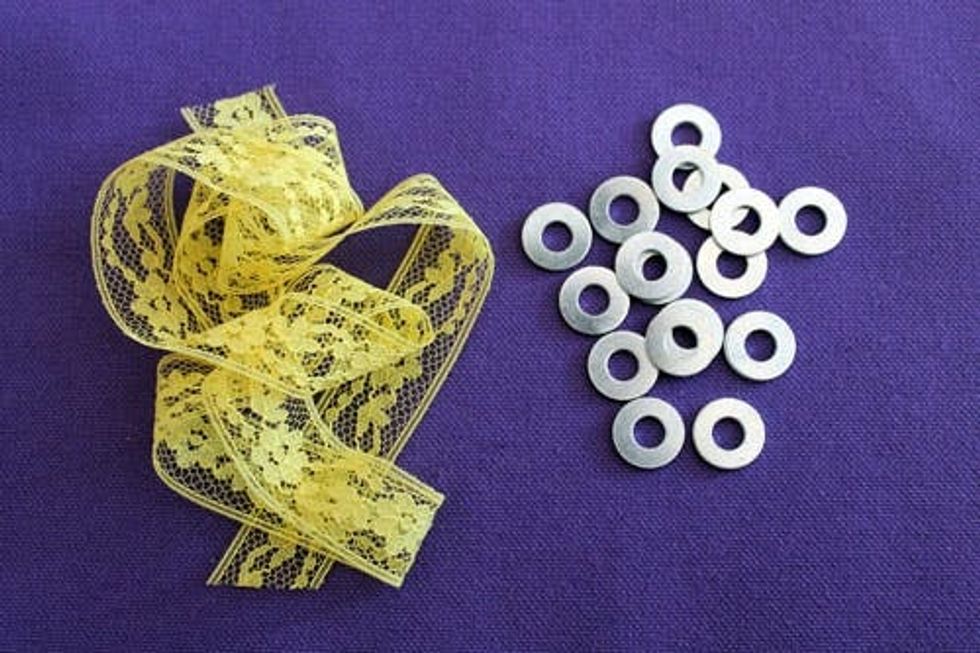 The materials for this one couldn't be simpler. In fact, you probably have a few spare washers in your toolbox and ribbon in your sewing box.
