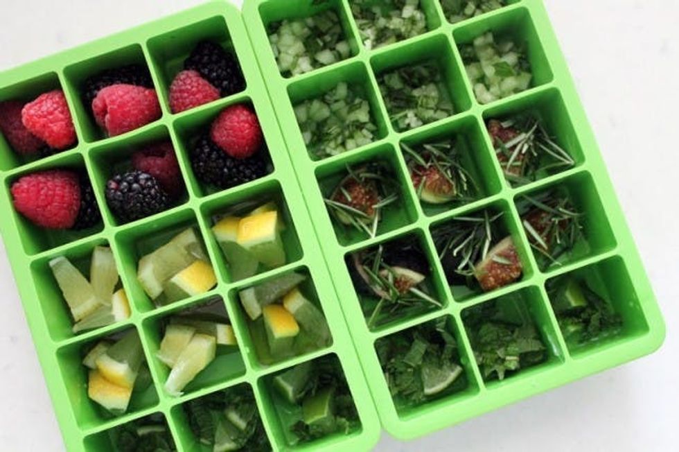 While we’re all about staying hydrated and mixing up cocktails on the rocks, the ice cube business is hardly booming. Where’s the fun in a plain old cube of frozen water? This recipe is as simple as finding a pair of ingredients you like, chopping them up, and dropping them in an ice cube tray.