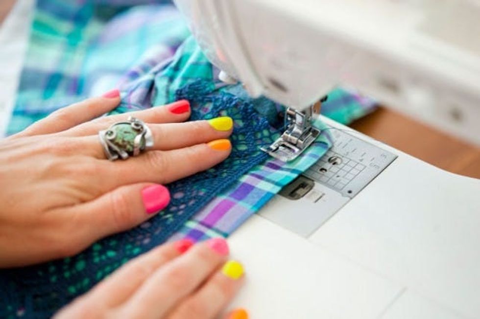 Who wears short shorts? We wear short shorts! But if your shorts are a little too short or on the plain side of things, here’s a quick and easy way to add a little more length and pizzazz in a fun, flirty, and feminine way. All you need is lace, shorts, and a sewing machine!