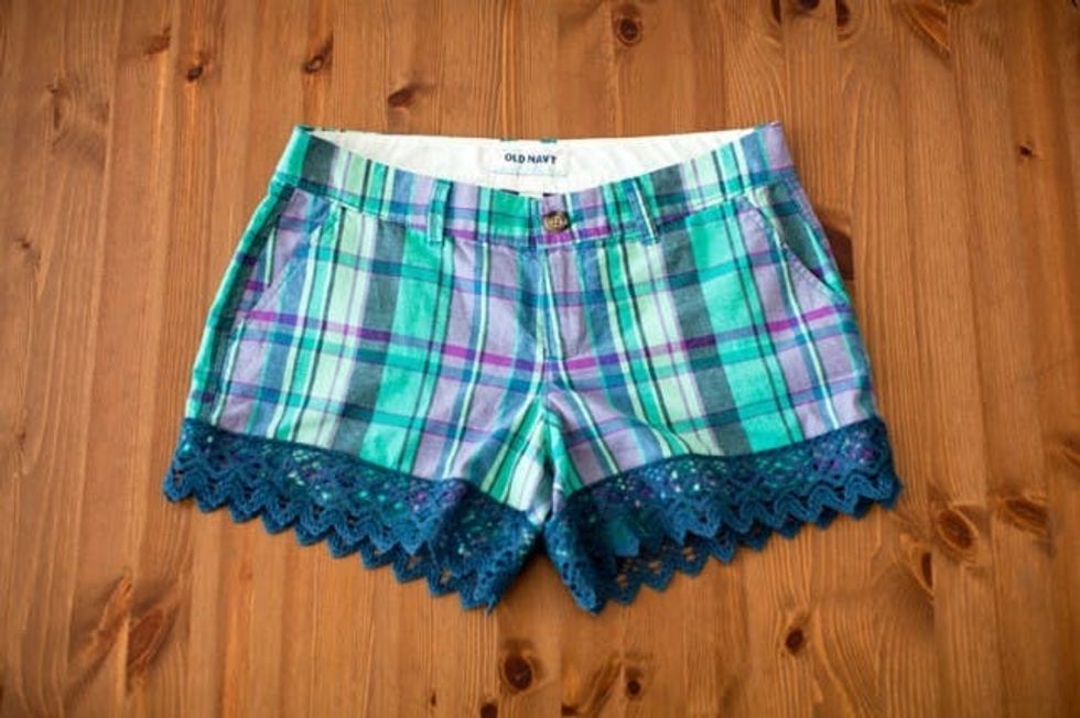 We hit up Old Navy for the two pairs of shorts we used. You can find similar lace trim at just about any fabric store.