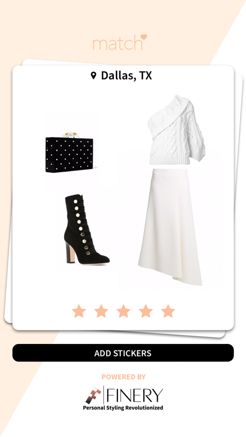 Earlier this year, Finery linked up with Match to start planning a partnership, which was announced on June 19. Users can now Rate the Date Look by anonymously commenting and rating outfits posted within the Finery platform. As a Finery user, you can mix and match items in your closet that you think would be perfect for wooing your crush, then seek out honest feedback from a neutral third party on the site.