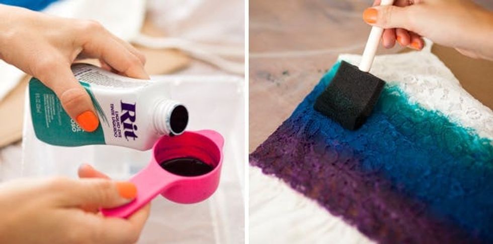 After oohing and aahing over all sorts of clever DIY dresses, we had to come up with a hack of our own. Inspired by a combination of color blocking and ombre, we turned a basic white dress into a fresh summer frock, perfect for frolicking, impromptu dance-partying, and the like.