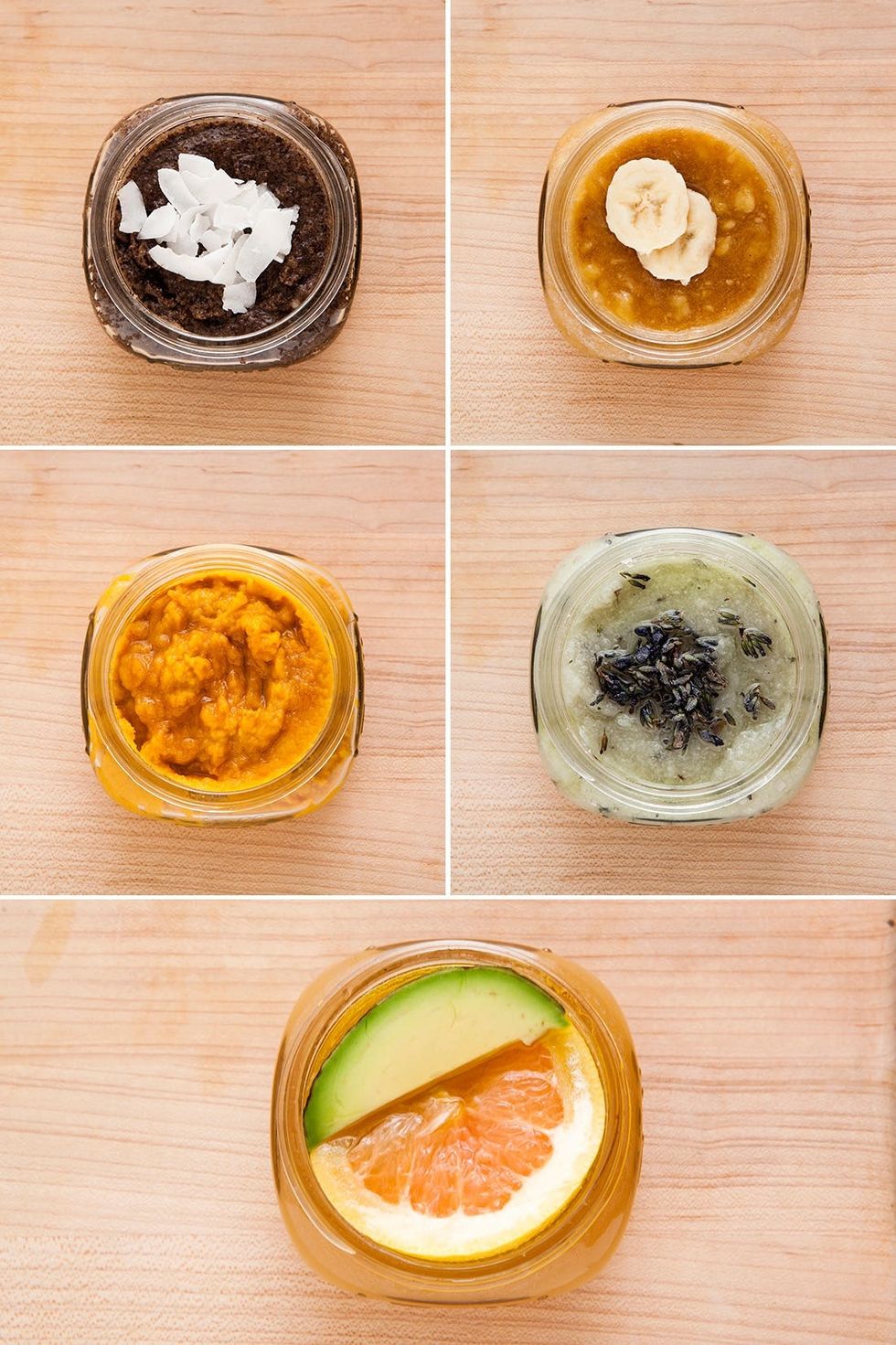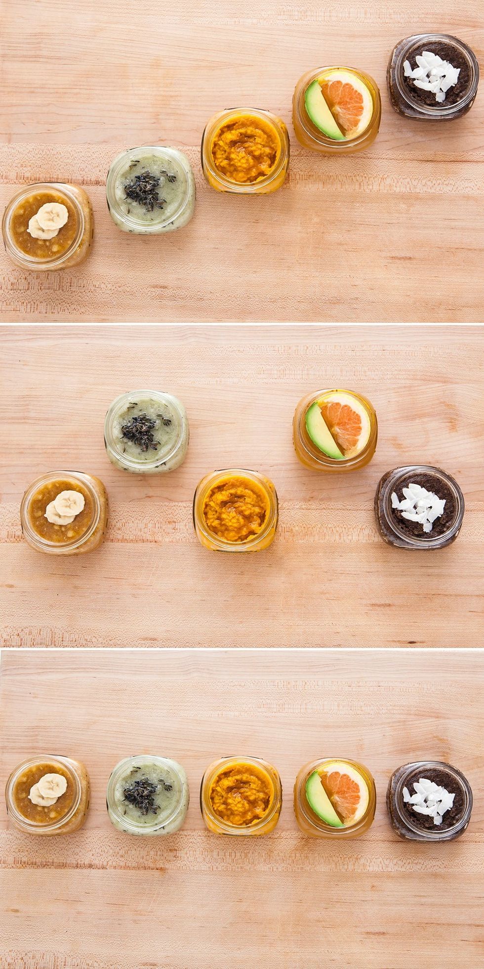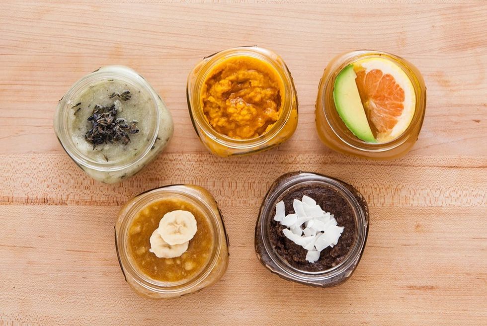 Unless you and your gal pals are planning to use these scrubs straight from the mixing bowl at a stay-at-home spa day (um, that sounds nice!), you’ll want to transfer your scrubs into containers so that they’ll keep longer (about a week in the fridge). We used glass jars so we could see exactly what scrub is inside—A+ for easy access.