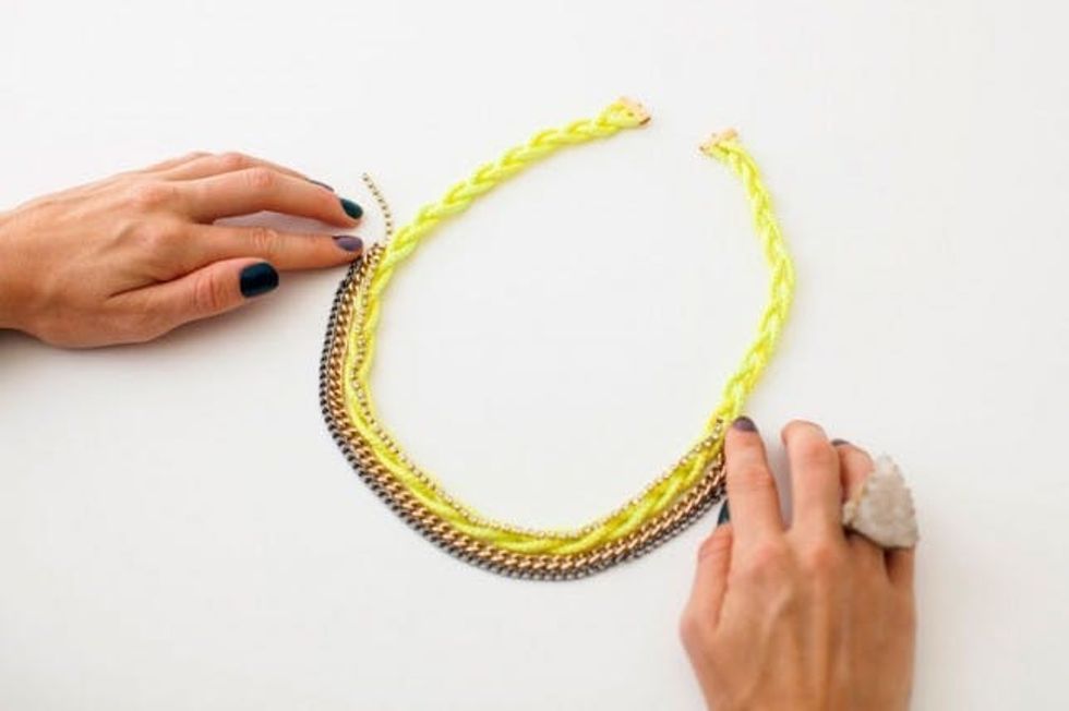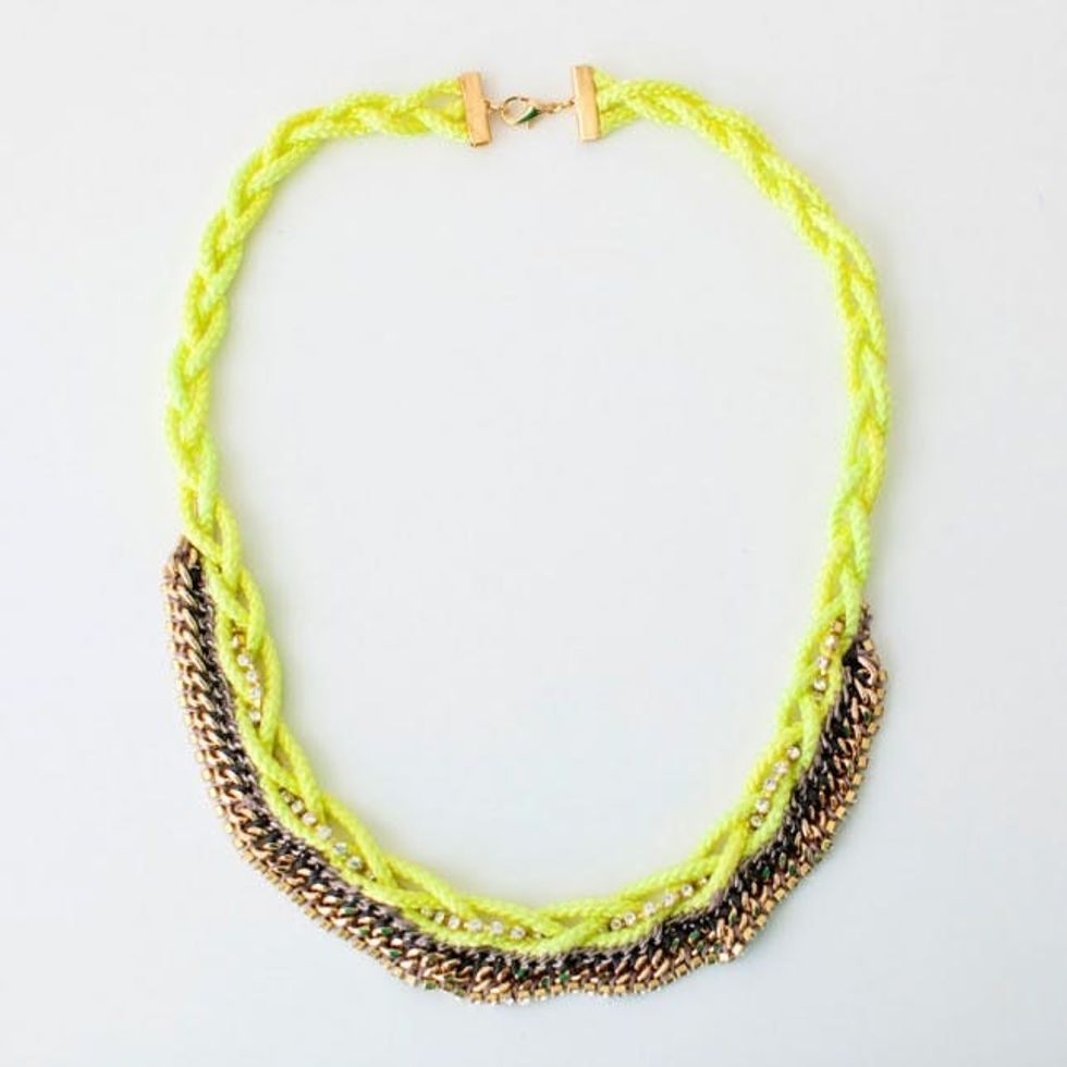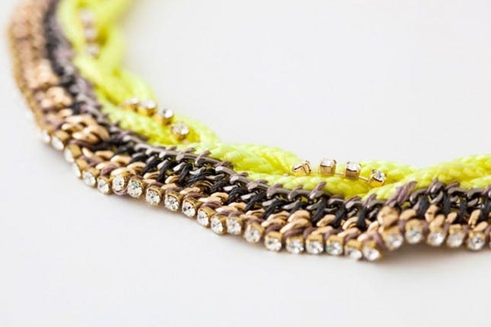 It’s a good day for a statement necklace, don’t you think? Well, we kind of think that everyday is a good day for a new accessory, especially one that combines neon with mixed metals in a totally chic and easy way. Better yet? This bling was created using materials from our latest Brit Kit — just add rope!