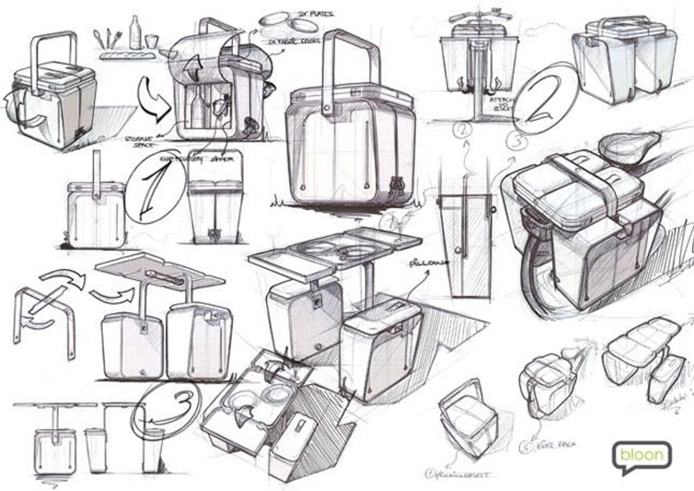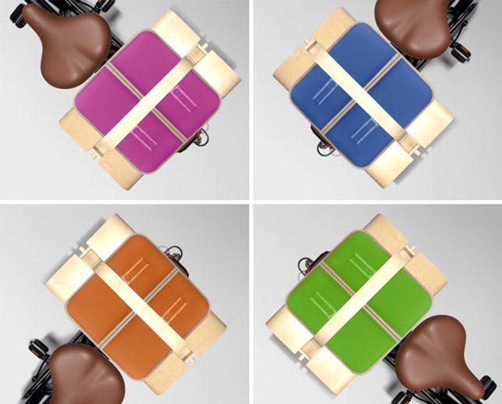 Made up of two sections for storing foodstuffs and utensils for a picnic, the sections easily split apart to sit atop a bike rack. What could be lovelier than a bicycle ride to the park complete with dinner for two?