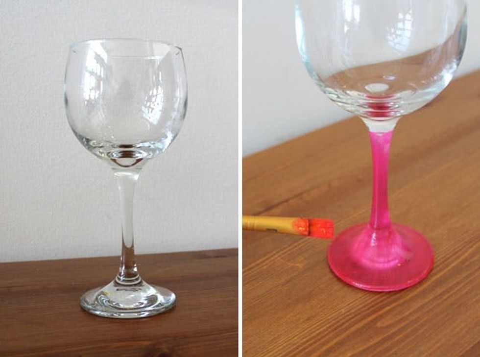We loved the stained glass so much that we made all kinds of glass decor: ornaments, wine glasses and candle votives. For all of the items we stained, we followed the same basic steps. Mix a small amount of glue with a few drops of gel food coloring. Add coloring frugally at first, and remember a little bit goes a long way. Swirl, and then you’re ready to get started!