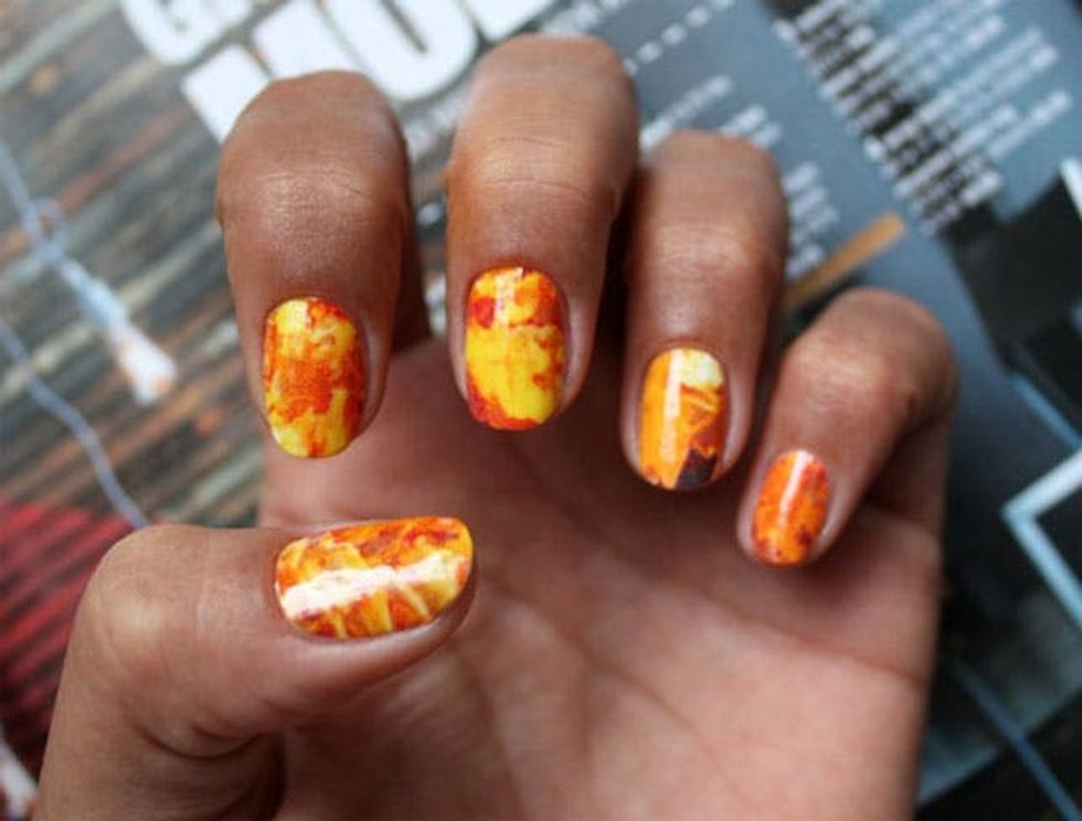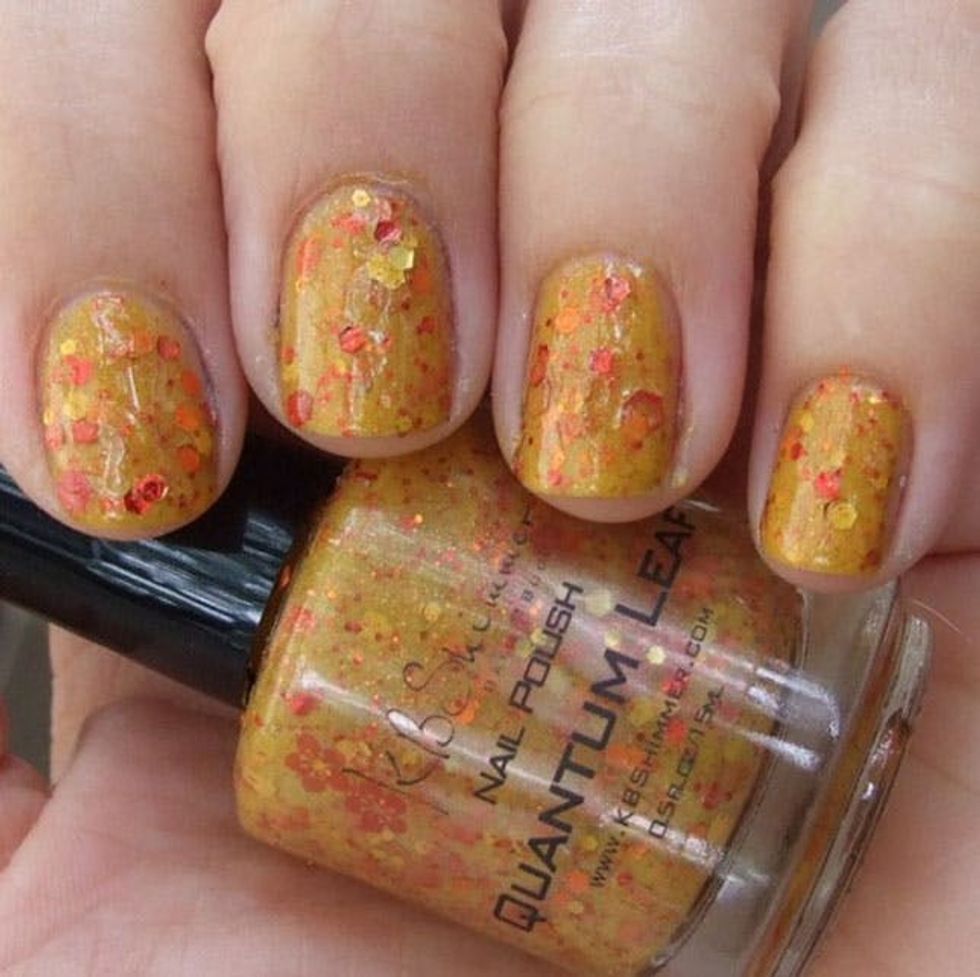 9. Quantum Leaf: No artistic skills needed on this one. This is an actual polish that comes out looking like falling leaves. Easy and pretty, our favorite combo.