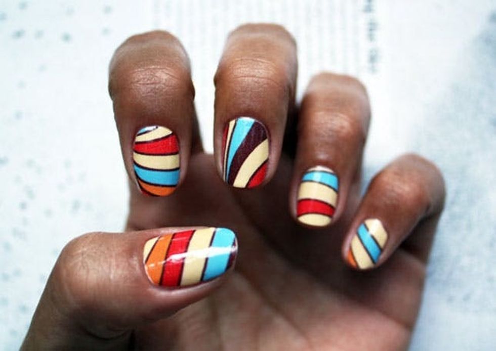 BONUS: Not fall related, but really awesome, these retro stripe nail decals are just our style for any time of the year. Could we get a set in Brit + Co. colors please? K thanks bye.
