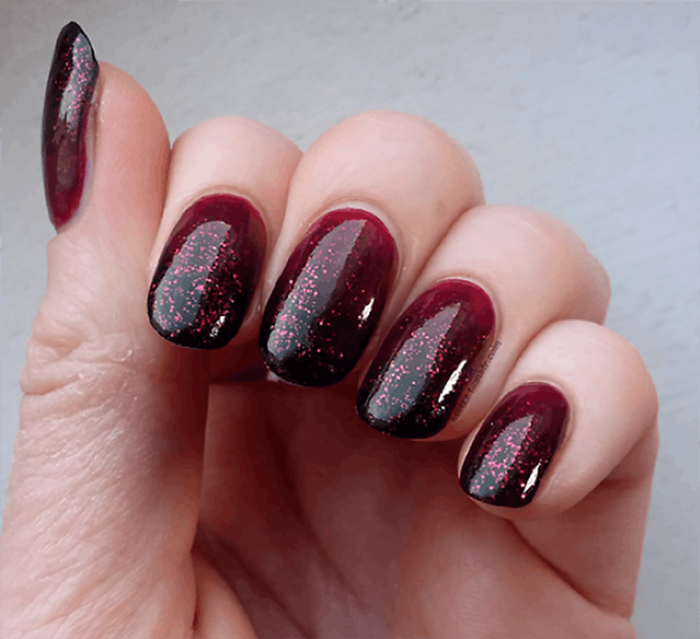 4. Oxblood Nails: The color of the season, these nails go the extra fashion mile by adding both an ombre and glitter effect. We also love that this one can be on-trend year round.