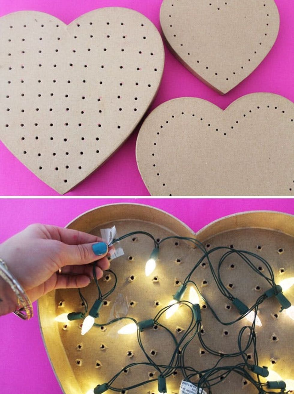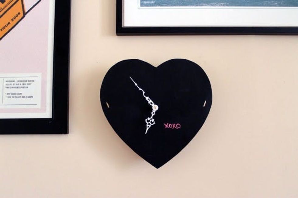 Our hearts are on fire here at Brit HQ, and we can’t get enough of the Valentine’s Day spirit. Earlier this morning, Brit showed the folks at the Today Show how to create 6 heartfelt last minute gifts, and we’re here with a couple more tricks for love-ly home decor. Hearts on the wall! We used heart-shaped cardboard boxes to create a pair of Lite Brite Hearts as well as a simple, chic Chalkboard Clock.