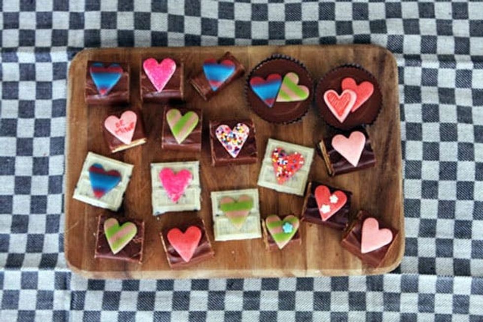 4. Repurpose Candy Bars + Starburst: Don’t have time to make your own treats? Hack it up with a few classics. We took Milky Ways, Snickers and Twix and topped them with Airheads and Starburst we cut out with mini cookie cutters. So fun!
