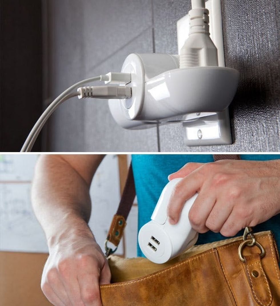 1. Pivot Power Mini ($25): This little dude is basically a surge protector that you can easily carry wherever you go. It’s got two three-prong outlets as well as two USB ports, making it easy to charge all your devices no matter where you are. Great for travel.