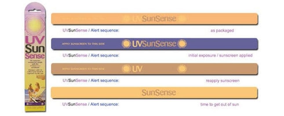 Take the guesswork out of your hands and onto, well, your wrist. UV SunSense bands are an easy way to track your skin’s exposure to potentially damaging rays and a friendly reminder to re-apply sunscreen throughout the day. All you do is apply sunscreen to your band as well as yourself before heading out into the sun. When the band changes color, it’s time to re-apply your lotion. When it changes colors again, you should start thinking about finding shade. It’s that simple!