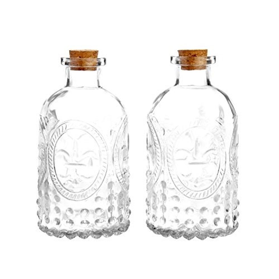 The apothecary style and embossed design of this MyGift Vintage Embossed Clear Glass Bottle makes it perfect for use as a flower bud vase or an essential oil diffuser bottle, while its cork lid provides a secure and stylish closure.