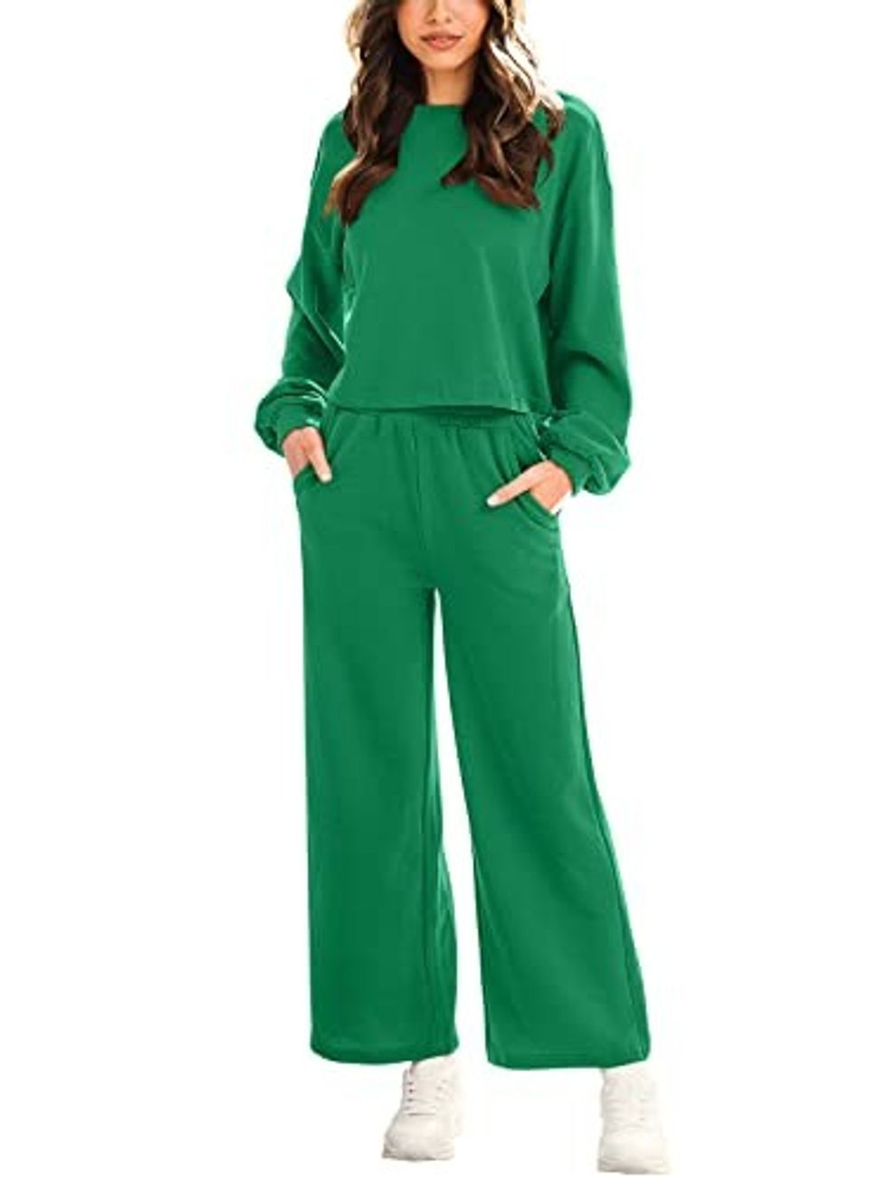 You will not be disappointed when you slip on this 2 Piece Sweatsuit that everyone has been putting at the top of their Amazon wish list. The knit pullover crop top with a crew neck and long puff bubble sleeves will give you a flirty and fun look. Paired with the high-waist jogger pants with a drawstring tie elastic waistband, you'll feel relaxed yet stylish all day long.