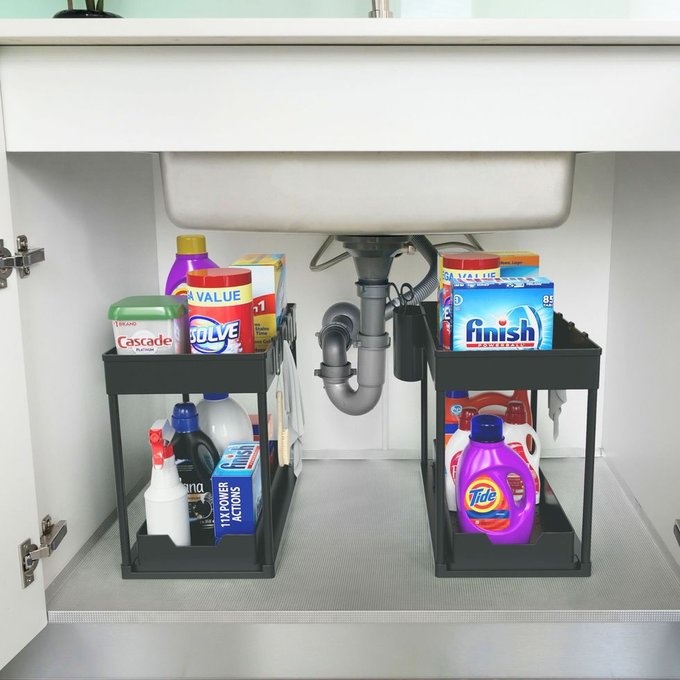 Keep cleaning products out of view for a clean, happy looking space by putting them in the under sink organizer. It does exactly what it says, organizes things under your sink. It will come in handy every day.