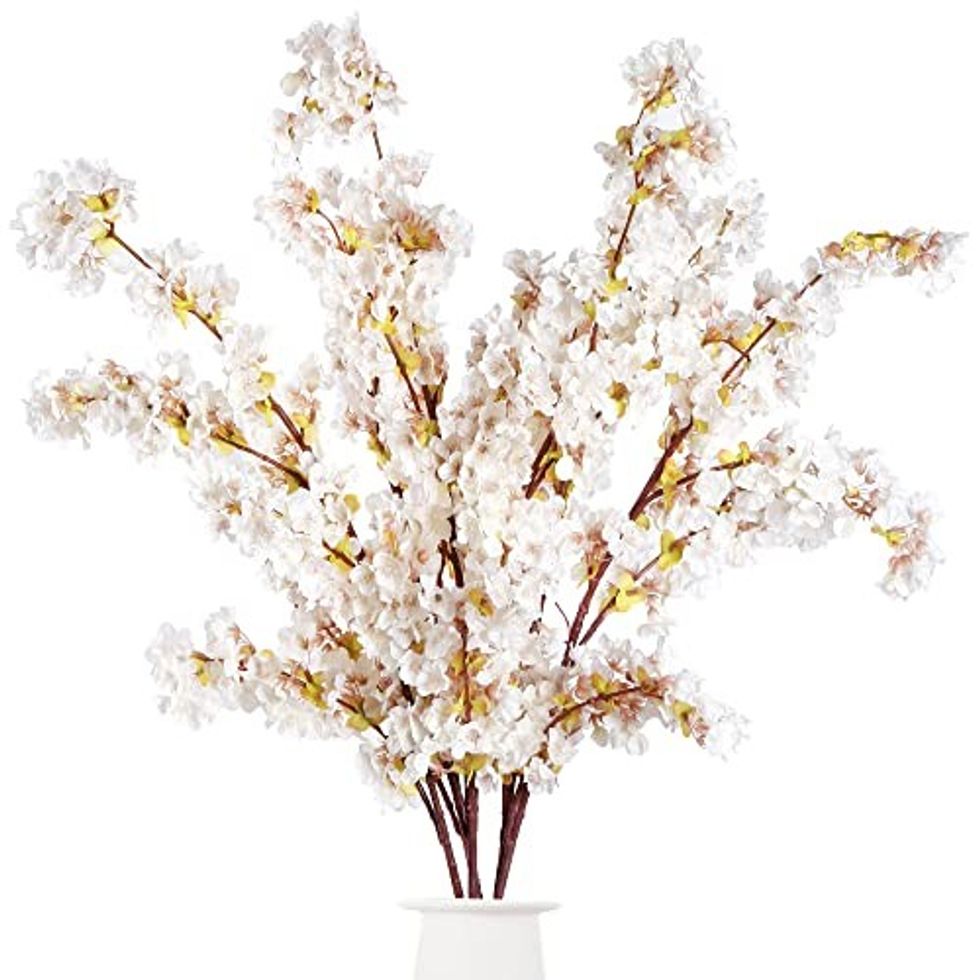 Decorate your home with a flower arrangement that is sure to make all of your visitors jealous. This set of Artificial Cherry Blossom Branches is a great addition to your home as we welcome the warm weather back. They look stunning in any vase you place them in, and you can even mix them in with other types of flowers for a more unique look.
