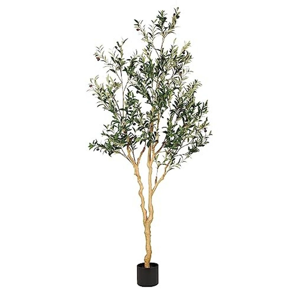 Finding decor pieces that look as good in person as they do online can be a struggle, but don't worry, we've done the dirty work for you. This Faux Olive Tree will be a focal point in your home with its realistic look and height, standing 7 feet tall. It's better than having a real houseplant because there's no upkeep, and it always looks flawless no matter what season it is.