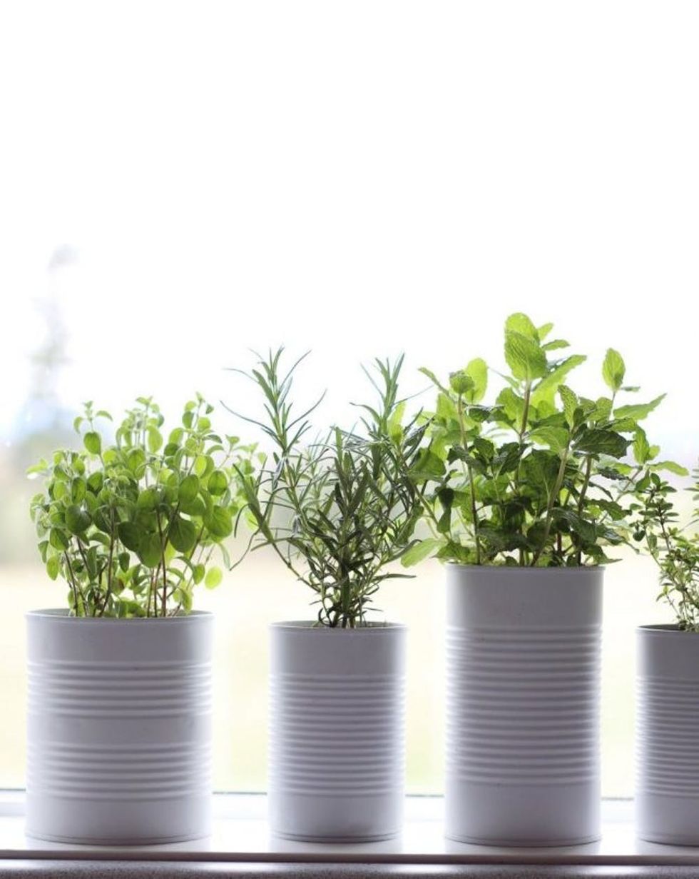 1. Garden in a Can: No yard? No problem. Growing herbs on your windowsill looks cute and is great for easy cooking access. (via Kendra Castillo)