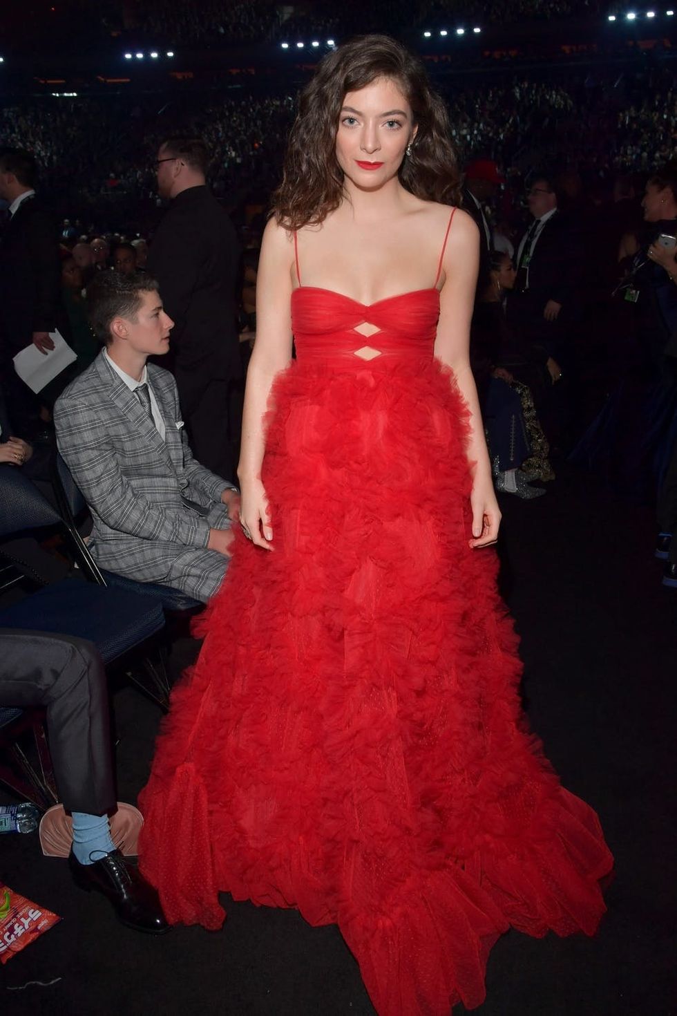 The 21-year-old crooner was in attendance in support of her sophomore effort, Melodrama, which was nominated for Album of the Year, and while she skipped the red carpet, she still managed to make a major statement — literally — with her wardrobe.