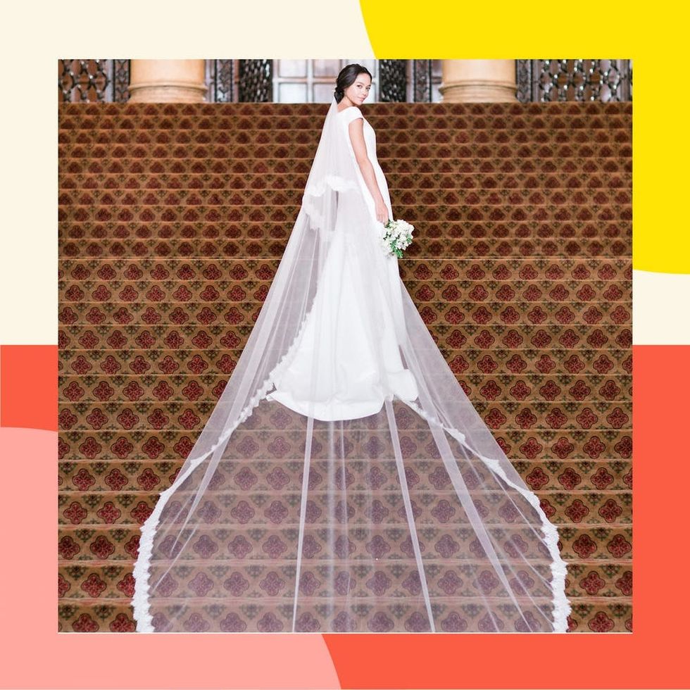 As for that gorgeous veil, it’s not included with the gown, but those seeking to have their own RL Disney princess moment will be able to purchase a similar style separately on Floravere’s site (albeit in a likely shorter version) soon.