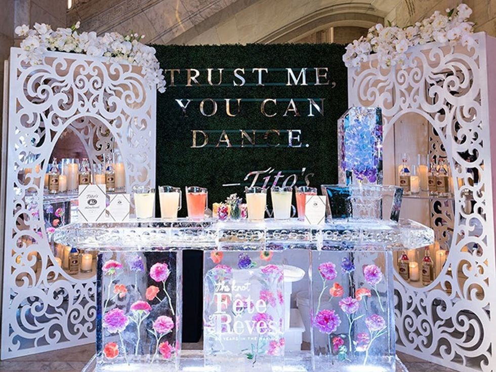 Frozen Flowers: Put your floral arrangements on ice with frozen decor. "Master the trend for your own nuptials by incorporating a showstopping ice sculpture into your reception, or keep Champagne cool with an ice bucket crafted from your favorite blooms," says Sylvester. (via 5ive15ifteen Photo Company)
