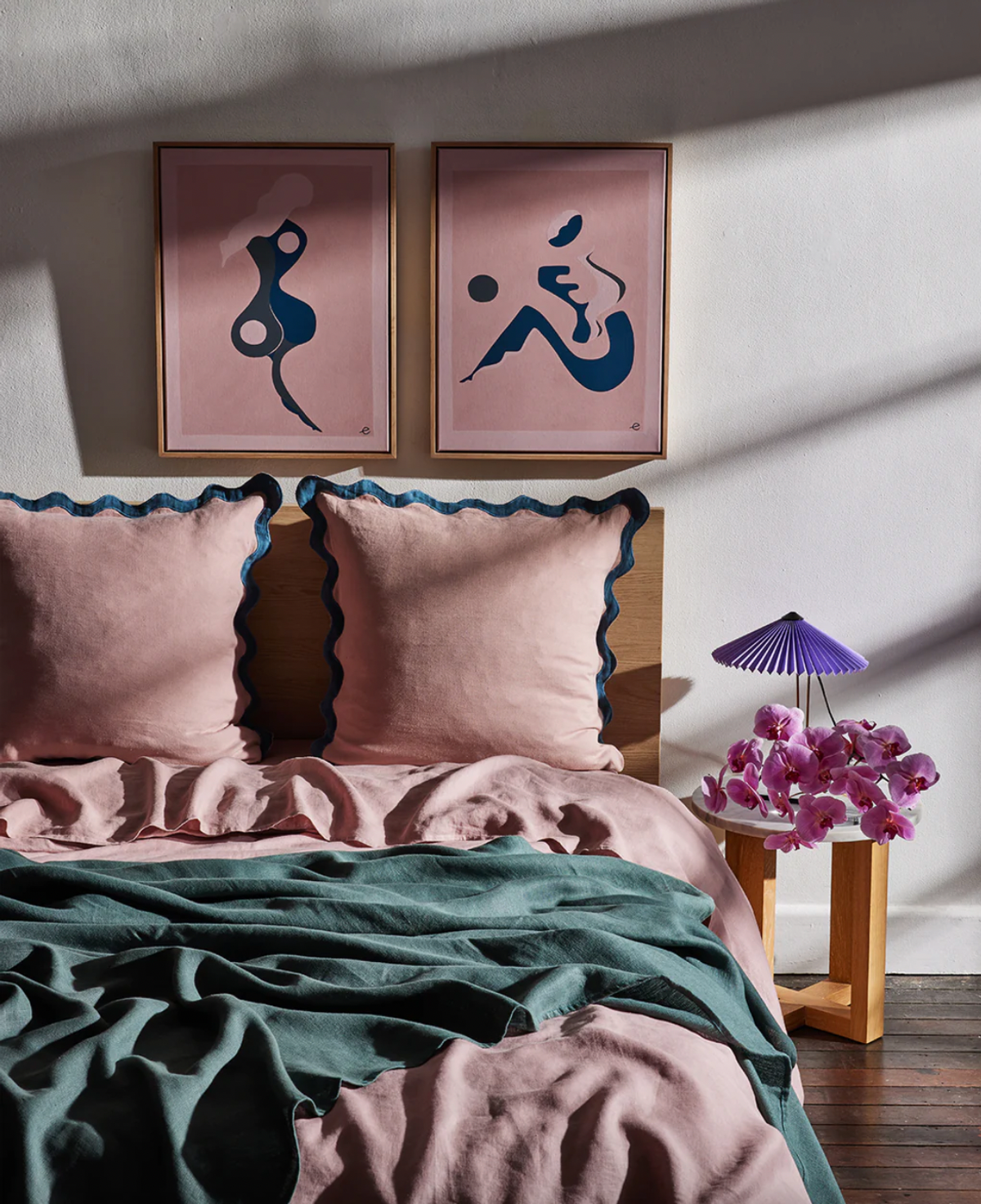 The color combos and that scalloped border stopped us in our bed-loving tracks. This lavender x petrol blend is stunning, but there's also limoncello x tumeric, terra cotta x rust, sage x olive and more — all made in 100 percent flax linen and OEKO-TEX certified fabric, so no nasty chems while you snooze off to dreamy time.