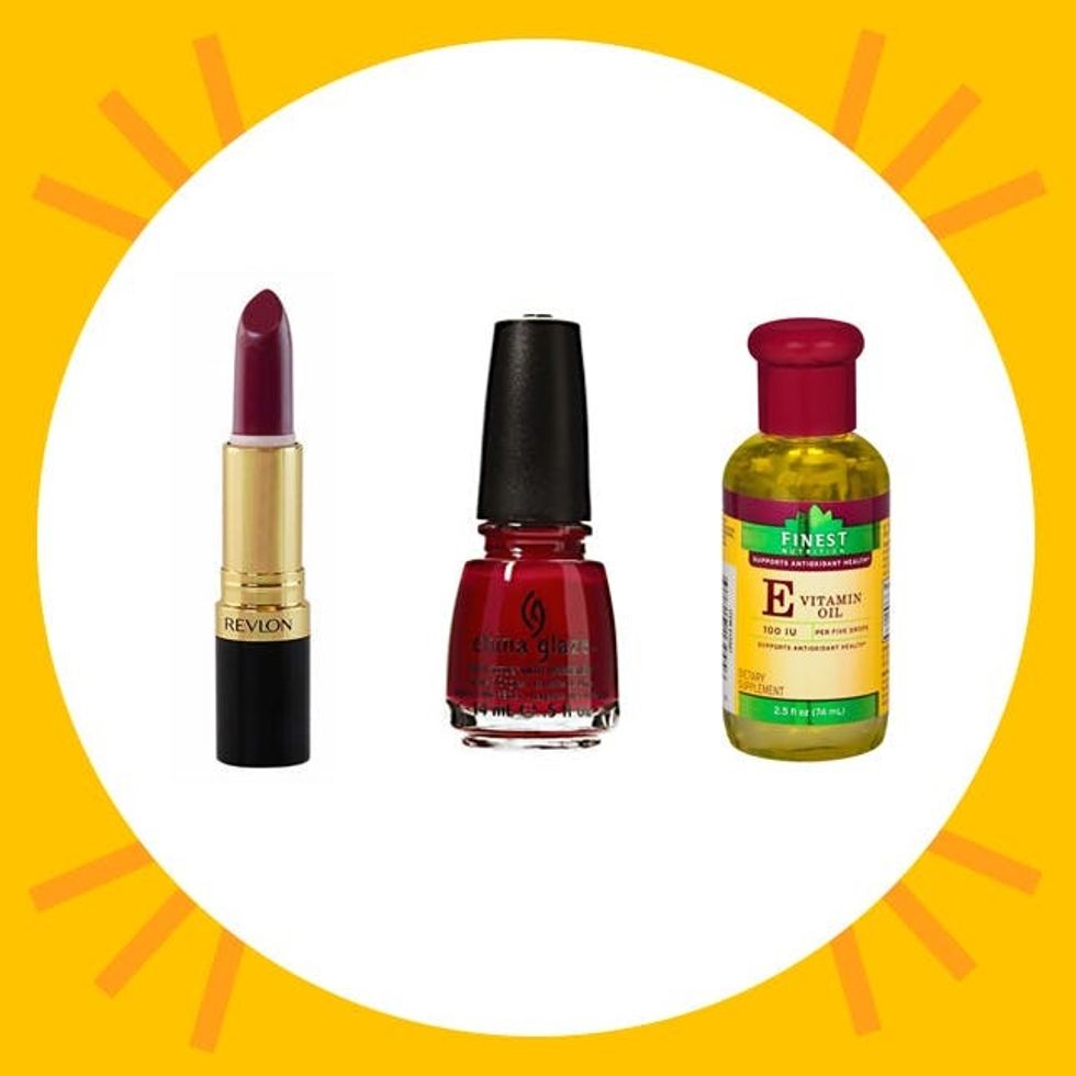 Fancy and Vintage: Erin, our affiliate content editor, is all about a retro-inspired style with daring details. "I love wearing a dark lip to make my blue eyes pop, but my vitamin E oil is a must-have," she dishes. "I get super dry lips, so I dab a light layer of this on every day — and definitely before a date." She finishes her look with an equally dark nail polish, a dress with a "radiant print," and a classic hairstyle.