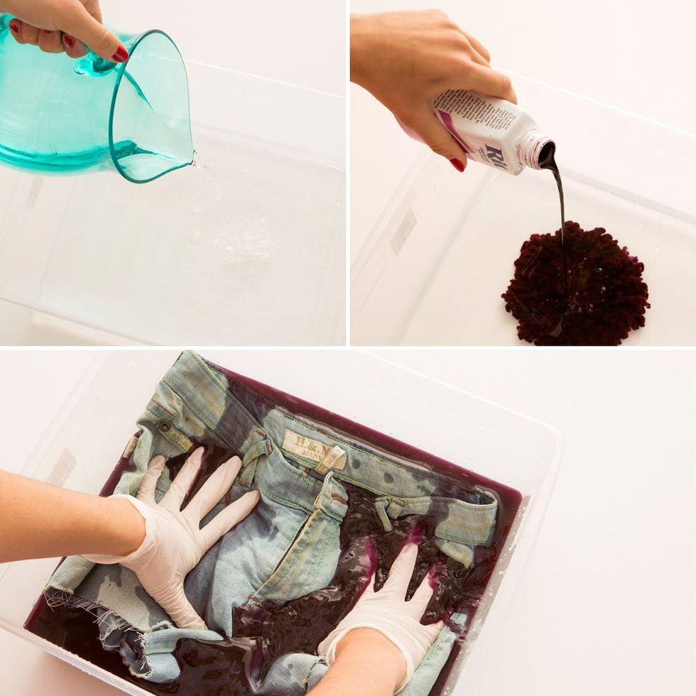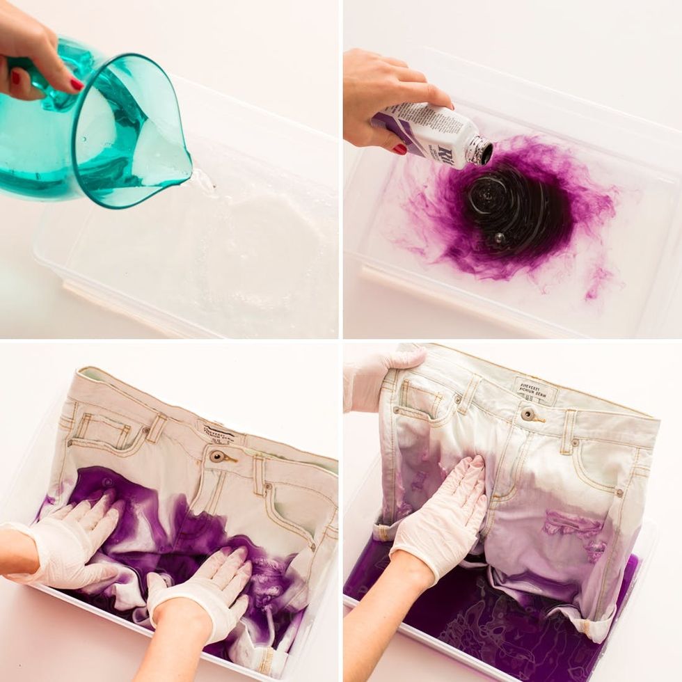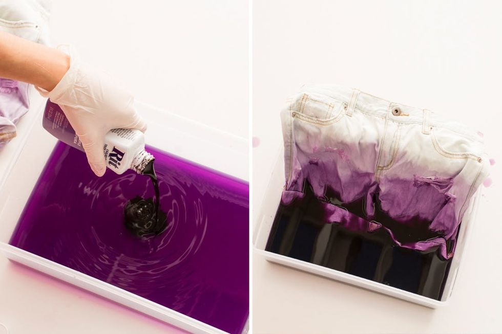 4. Mix ⅔ water with ⅓ fabric dye. Let shorts sit in dye for an hour.