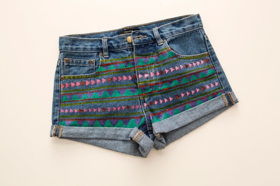 Update old shorts with a fun pattern. We chose aztec, but get creative! You could try cheetah, polka dots or even simple flowers.